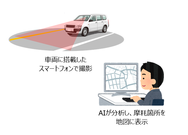 県警察と連携し、AI技術により取得した道路の外側線等の摩耗状況データを活用した外側線等の補修を推進します。