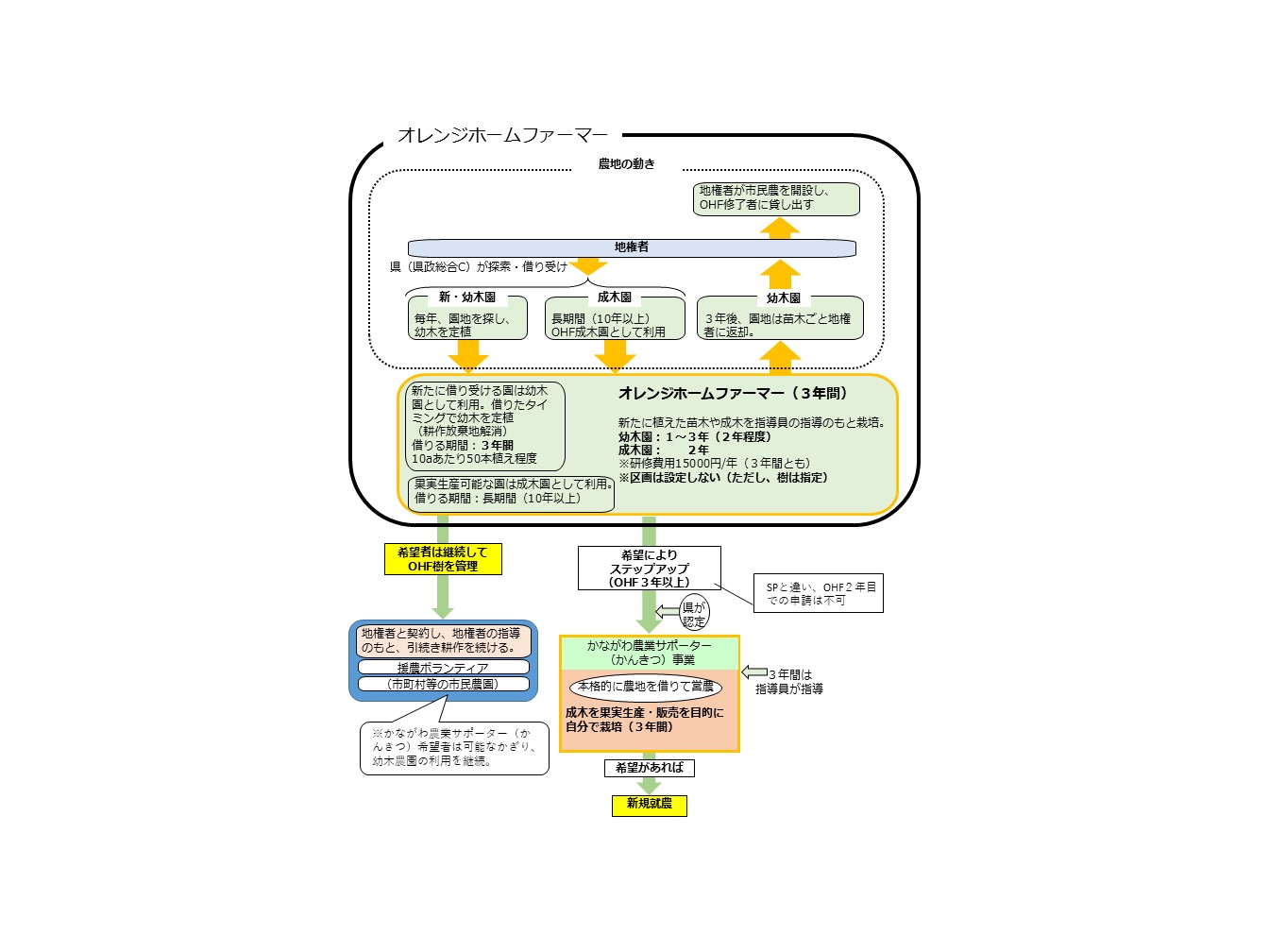 ※かながわ農業サポーター(かんきつ)は参入いただける面積に上限があり、農業で生計をたてることができる制度ではありません。農業で生計をたてることを目指す方は「かながわ農業アカデミー」での就農相談をご利用ください。